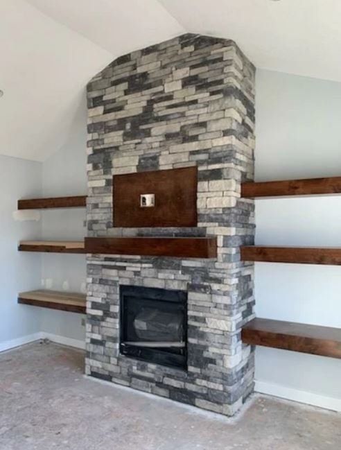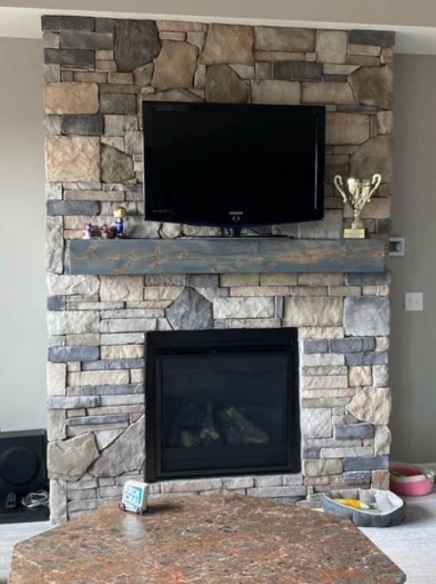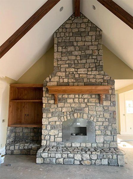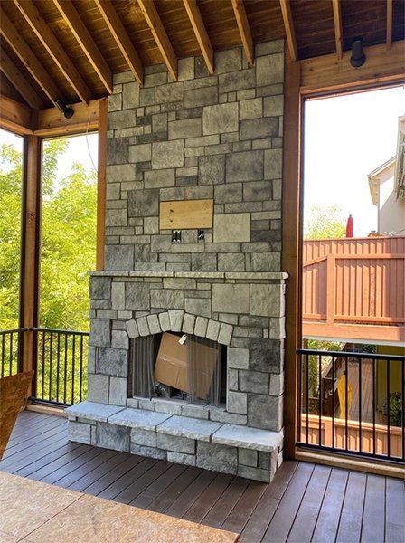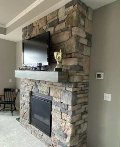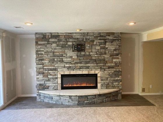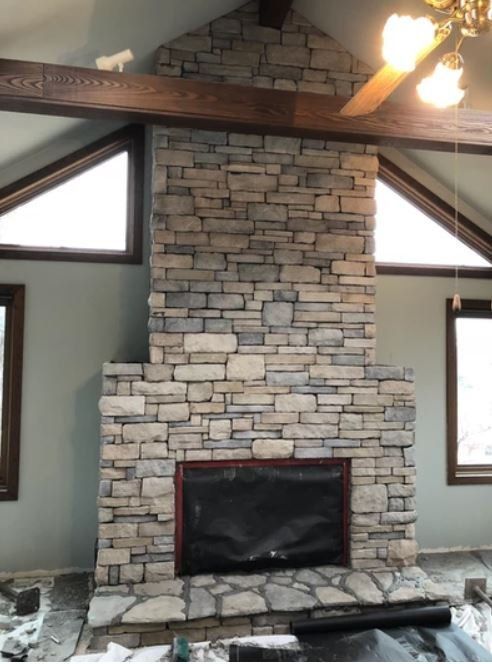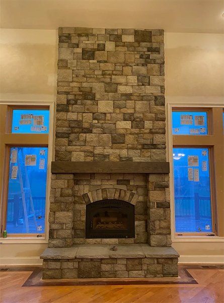 Browse finished work across residential and commercial installs: Stack Stone fireplaces, European Castle façades, Quickfit accent walls, Limestone entries, even brick slurry treatments. Save your favorites and bring them to the showroom—our team can match the look and colorway.